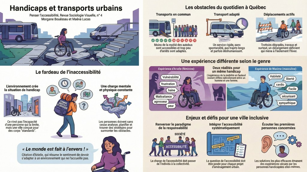 La mobilité handicapée révèle des inégalités systémiques : infrastructures inadaptées, intersectionnalité, genre, transport défaillant, appel à une responsabilité collective.