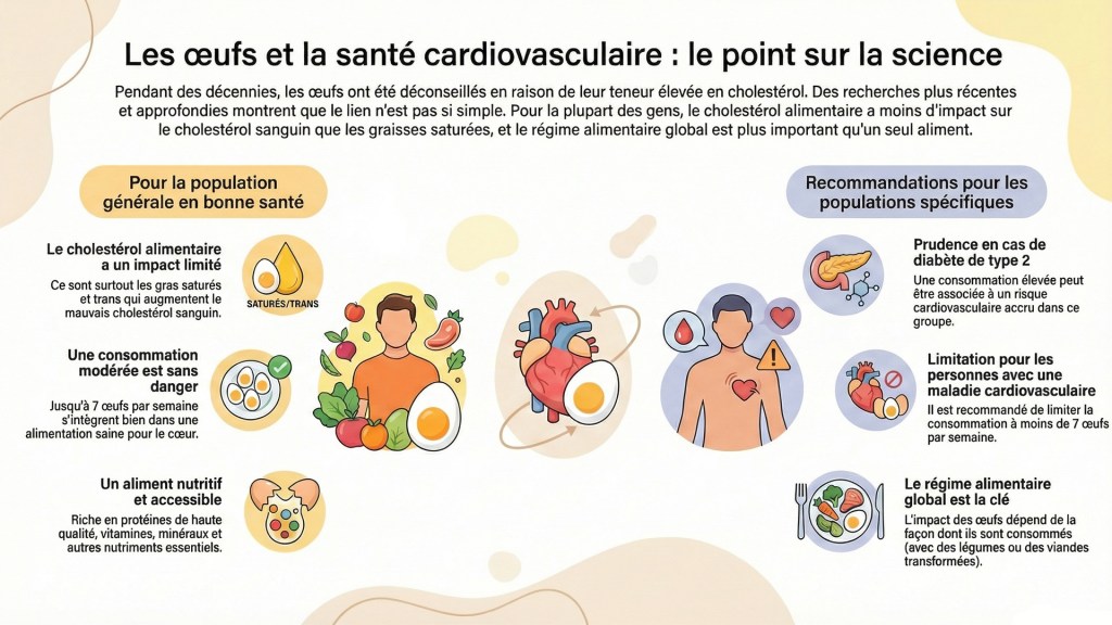 L’œuf, d’ennemi n° 1 des risques cardiovasculaires, s’intègre désormais à une prévention fondée sur alimentation saine.