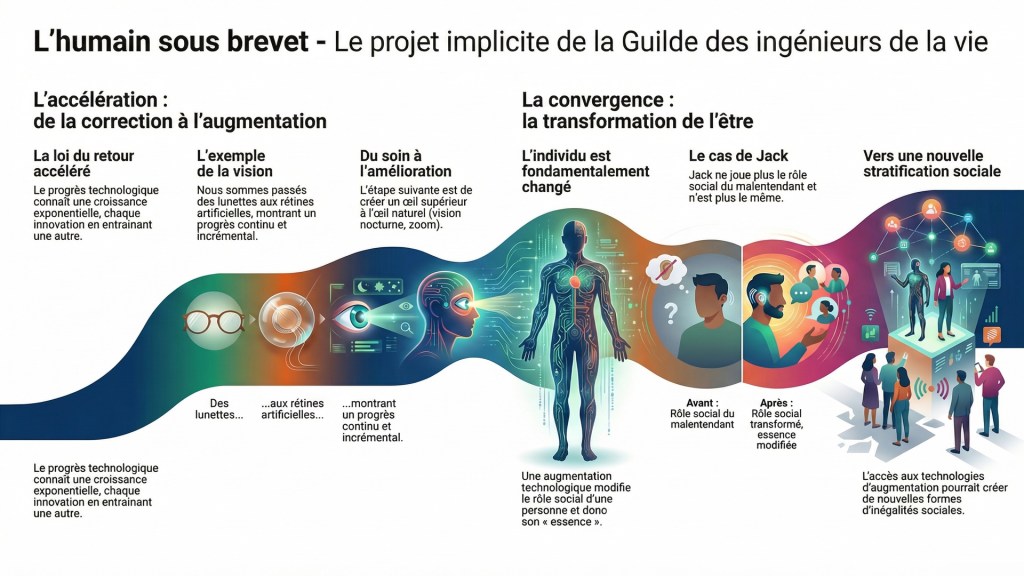 La convergence technologique, pilotée par la Guilde des ingénieurs de la vie, confisque l’évolution et reconfigure identités et inégalités humaines.