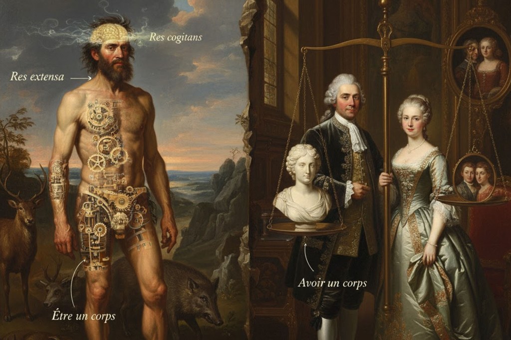 Le XVIIe siècle marque aussi une rupture importante dans la relation entretenue envers le corps. C’est le passage de l’idée d’être un corps à celle d’avoir un corps avec les traités de civilités. Être un corps renvoie au comportement rustre ou animal — la bête a un corps —, tandis qu’avoir un corps renvoie au comportement civilisé, à celui de l’honnête homme correctement éduqué dont les bonnes manières constituent « une rhétorique efficace qui affirme, défend et légitime un statut social[2] ». Autrement dit, parallèlement à la construction mécaniste du corps et à la construction scientifique du corps rationalisé de Descartes — « cette machine composée d’os et de chair, telle qu’elle apparaît en un cadavre[3] » —, s’élabore la construction culturelle d’un corps support des relations sociales, devient « l’aspect le plus immédiat de la personnalité[4]. » Le changement n’est pas banal, car il engage l’individu dans son essence même ; il est désormais responsable de son corps, il doit répondre de son état.