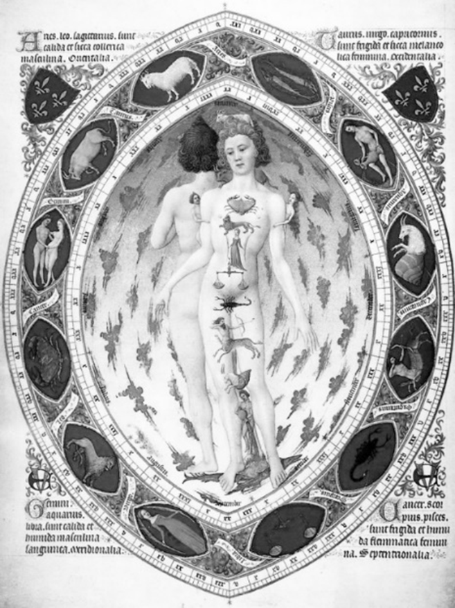L’homme anatomique, Les Très Riches Heures du duc de Berry, 1416.