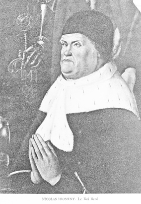 À l’inverse de la représentation iconographique de ce corps idéalisé des puissants, de ce corps aux proportions quasi parfaites, du muscle révélé, il y a aussi une iconographie qui rend compte des corps appesantis, replets et obèses. Le peintre Nicolas Froment, en 1476, représente un roi René au visage massif, aux doubles mentons. Il y a aussi l’image du ravi « au visage bouffi, yeux clos, col court, épaules rondes, ventre largement entraîné vers l’avant[13] » illustré dans le mariage de la vierge du Livre des heures d’Étienne Chevalier. Le glouton de la Cavalcade des vices, chevauché à la fois par l’ours et le bourgeois, illustre l’empâtement du corps, indique son indolence et sa paresse. Il y a aussi cette distinction sociale de l’apparence des corps illustrée dans la miniature de Gaston Phœbus du repas collectif du Livre de chasse où des serviteurs ventrus sont opposés à des nobles plus minces à la ligne plus découpée. Le XVIe siècle signale aussi l’ascension sociale, dans les pays du nord, d’une certaine bourgeoisie marchande, d’une certaine ascension des obèses en quelque sorte. Le Chanoine Van der Paele de Jan Van Eyk, le Juvénal des Ursins de Jean Fouquet et le Chancelier Rolin de Jean Perréal témoignent de cette période où l’ascendant social des hommes se mesure à leur poids : « la fin de l’homme étant de manger, la plus haute dignité appartient à celui qui mange davantage et l’office de l’art sera de perpétuer les preuves que le modèle l’emporta en richesse et autorité puisqu’il eut plus de pouvoir que d’autres de manger[14]. »